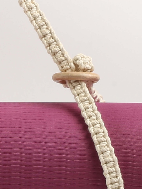 Practical and stylish, this macramé yoga mat holder is designed to keep your yoga mat secure and easily accessible. Its handcrafted design adds a touch of artisanal charm to your yoga practice.